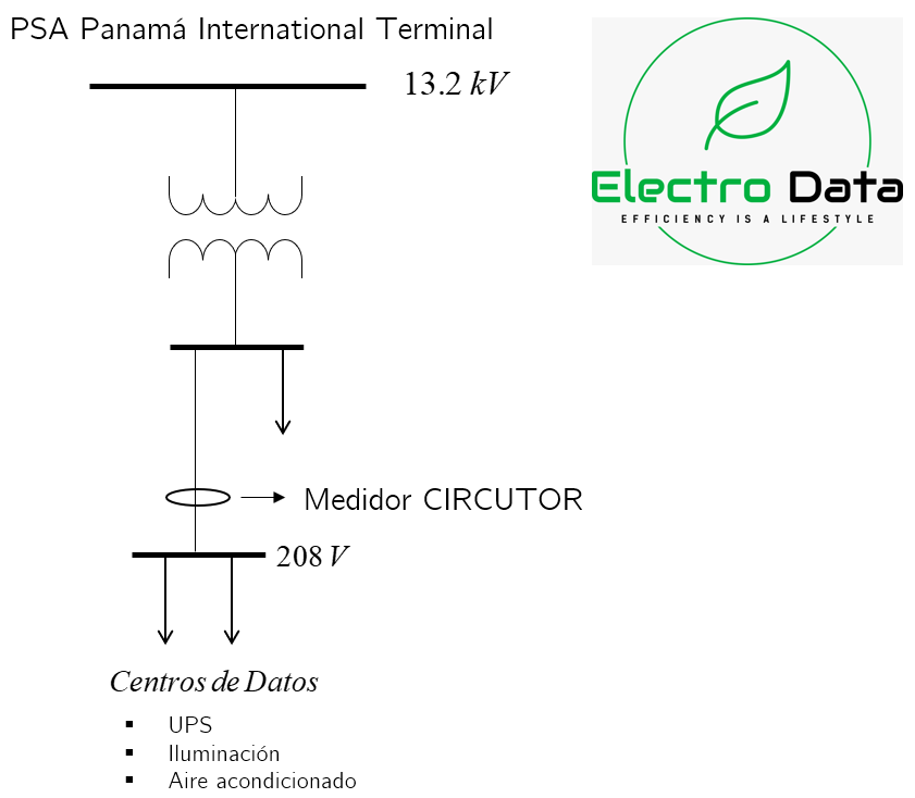 | Descripción general de la carga que se está midiendo (electrónica, sensible, fundición, motores, etc): | Mide el consumo de los elementos de infraestructura de dos contenedores con aires acondicionados, UPS e iluminación. |